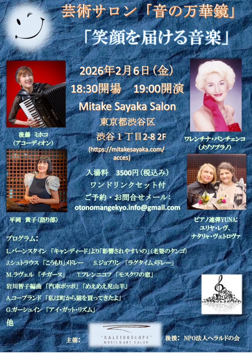 2024年に続いて、再び芸術サロン「音の万華鏡」(渋谷)に出演します。ロシア人アーティストのコンサート・ゲスト出演です。25分間のソロ演奏です。