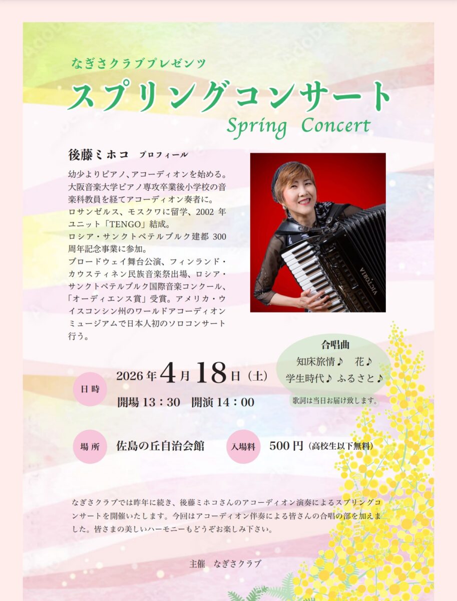 昨年ご好評いただいたミニコンサートが今年も開催されます。自治会の方以外、どなたでも参加できます。ただし、席数が限られているので早めにお申し込みください。